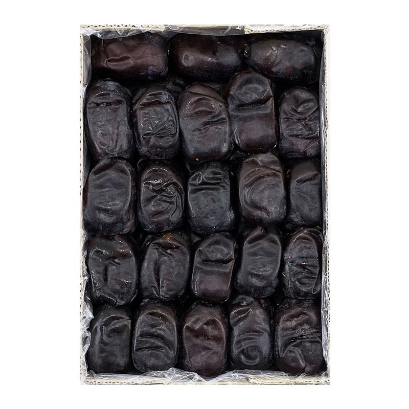 - رنگ یکنواخت: خرمای تازه رنگ قهوهای تیره یا مشکی براق دارد.